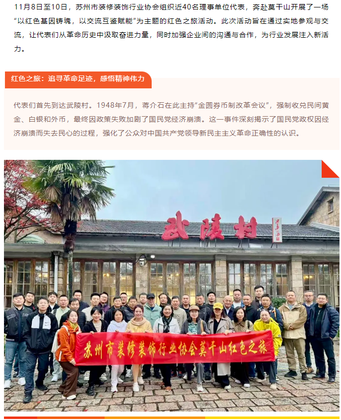 以红色基因铸魂,以交流互鉴赋能——苏州市装修装饰行业协会莫干山红色之旅活动圆满结束