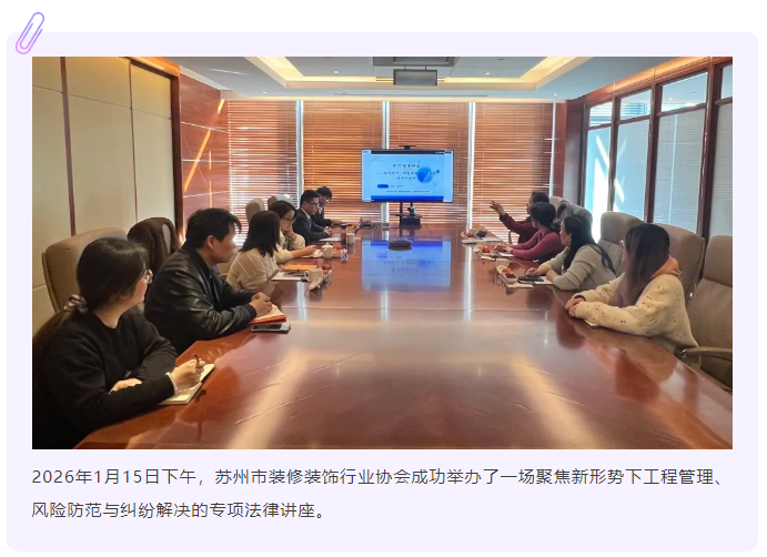 苏州市装修装饰行业协会举办专项法律讲座 助力企业风险防范与纠纷解决