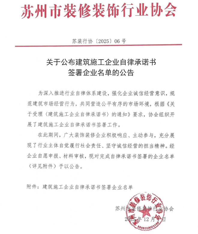 关于公布建筑施工企业自律承诺书签署企业名单的公告